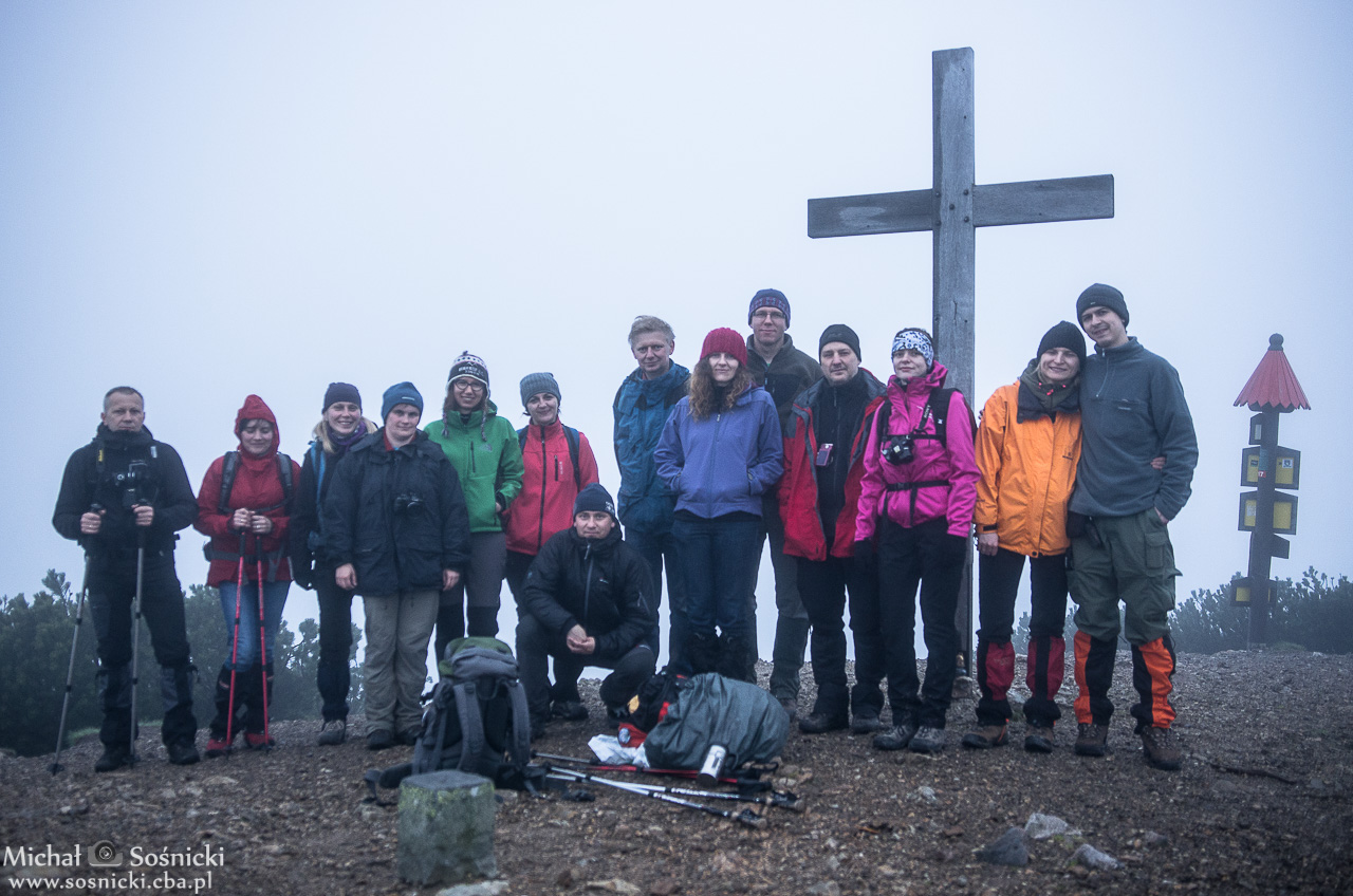 Pamiątkowe zdjęcie przy krzyżu na Grzesiu (1653 m) i część z nas wraca z powrotem do schroniska a część wędruje dalej w kierunku Rakonia i Wołowca, a Wiesia z Przemkiem idą nawet na Jarząbczy Wierch… I jako jedyni widzą tego dnia przepiękne słońce i piękny spektakl, właśnie na tym szczycie! 🙂