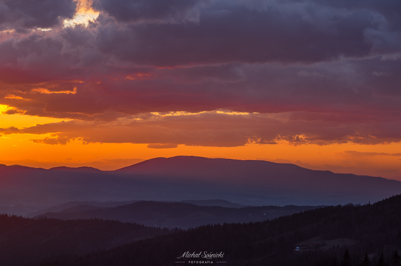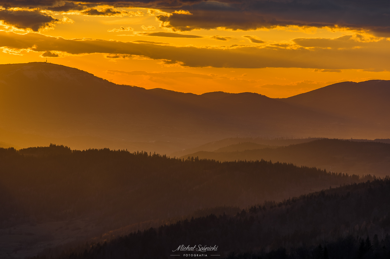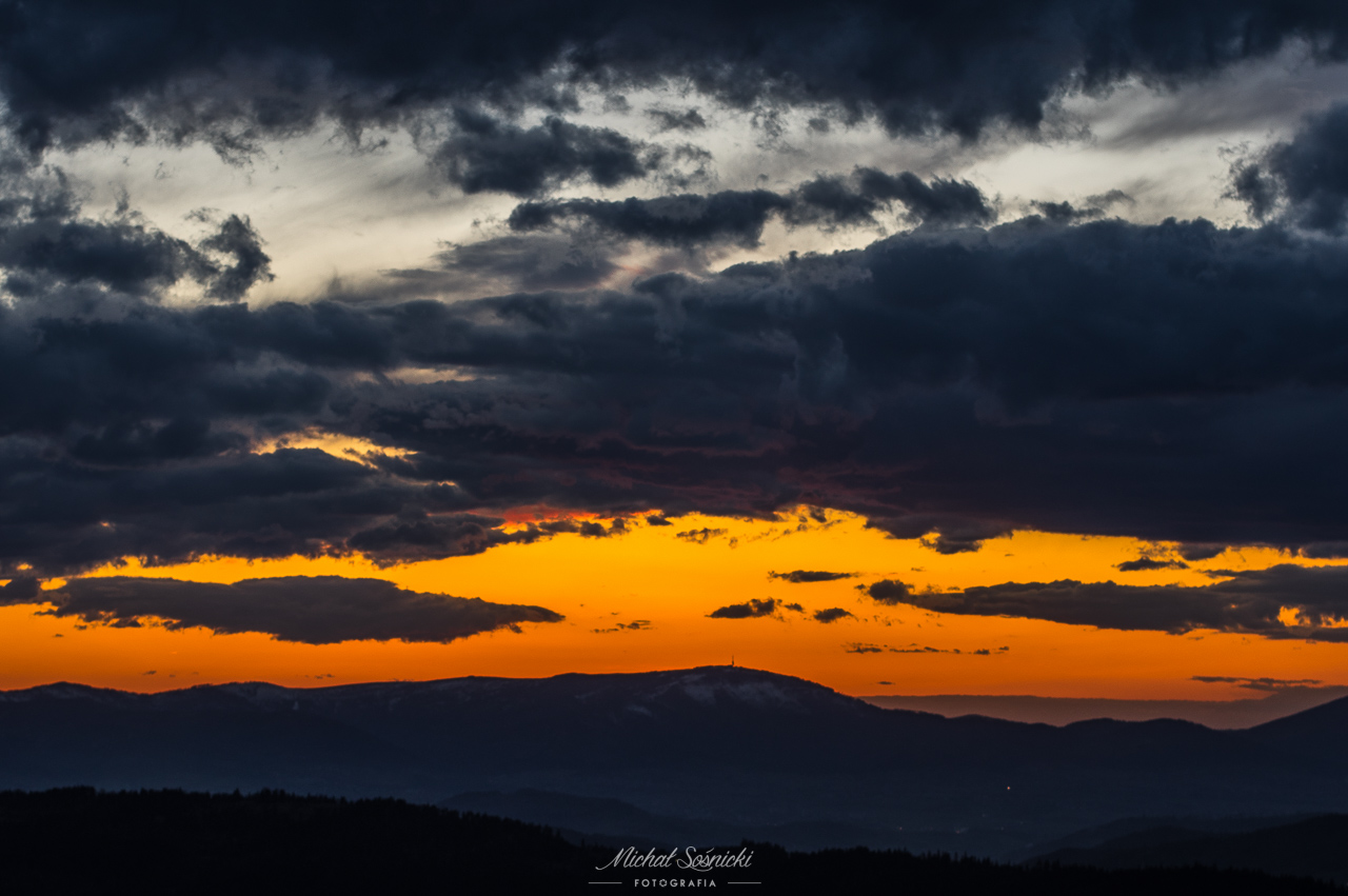 | Słońce zachodzi z tej perspektywy, centralnie za Skrzycznem… |