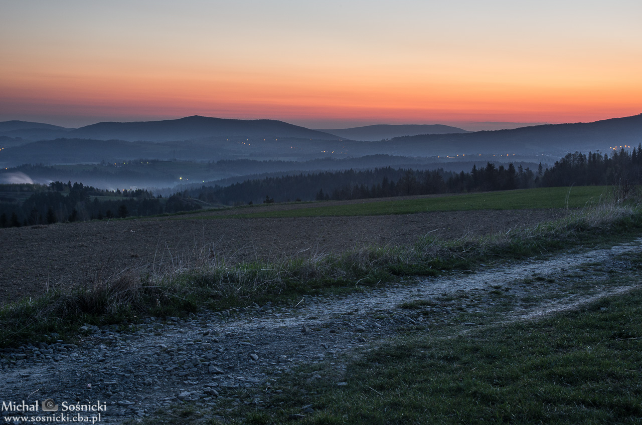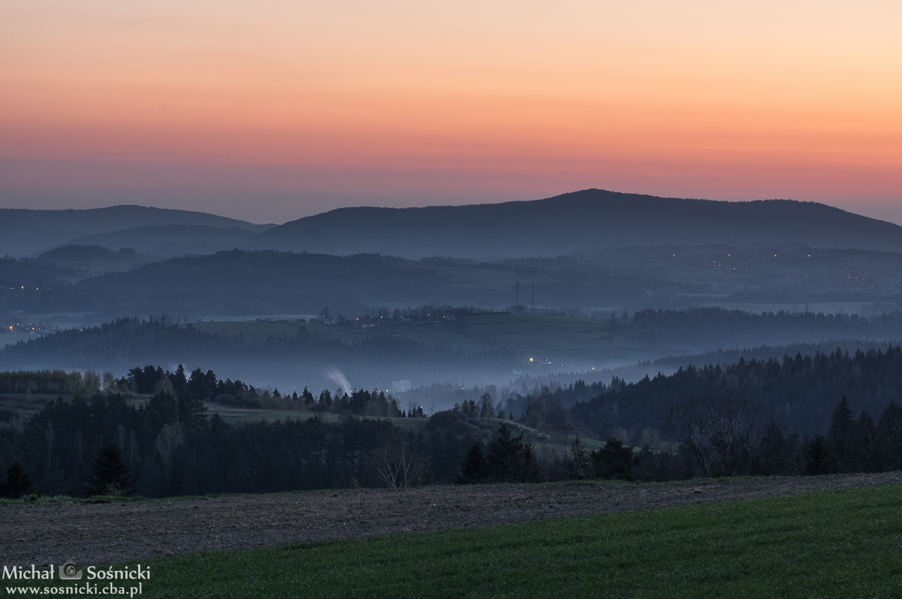 Góra Ludwiki 653 m. 4.50 a więc jakieś 40 minut przed wschodem słońca… Przy pięknej pogodzie można na godzinę przed wschodem, podziwiać kolorki na niebie…