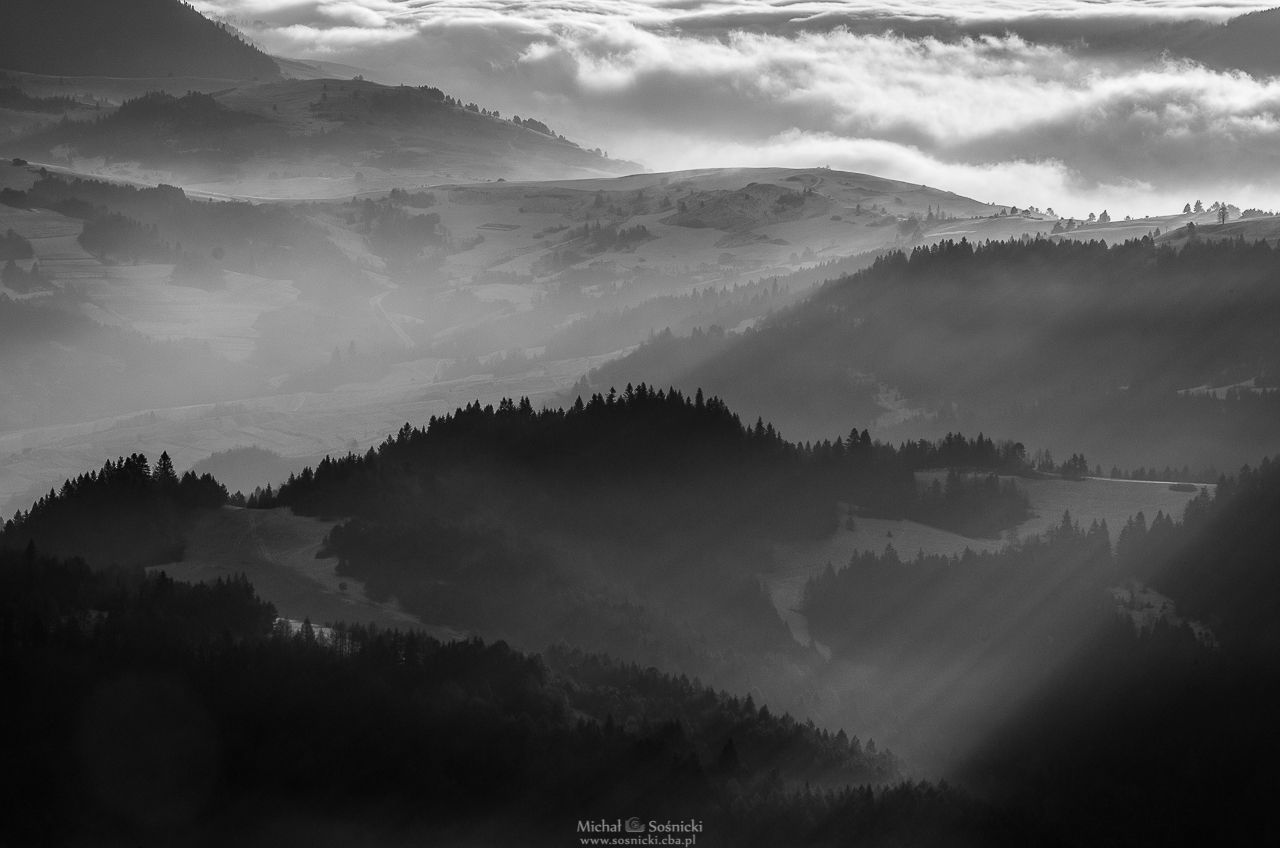 O autorze: Michał Sośnicki jest rodowitym krakowianinem, od kilku lat mieszkającym w Zawoi. Fotografuje od 6 lat. Absolwent Kursu Fotografii Artystycznej Zbyszka Pozarzyckiego w Krakowie. Tematem przewodnim jego prac jest krajobraz, pejzaż oraz architektura – głównie drewniana. Stara się fotografować wyjątkowe, magiczne momenty w ukochanych górach. Często pokazuje świat nieco inaczej…